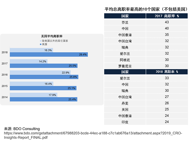 挑战二:各国CRO人才跳槽动机和频率不同