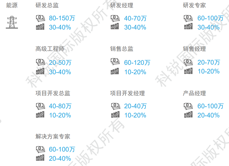 薪酬趋势:行业整体薪酬趋稳,自然涨幅在8-12%,跳槽涨幅在20-30%。能源互联网领域资深人才紧缺,部分职位薪资涨幅可达50%,甚至更高(文中部分数据是猎头公司AG公司国际专家顾问的分析预测,供企业和猎头招聘参考)