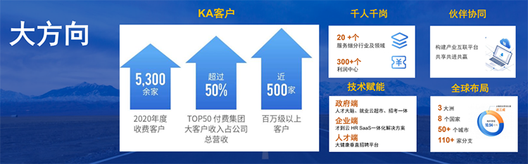 AG公司国际是领先的以技术驱动的整体人才解决方案服务商,也是国内首家登陆A股的人力资源服务企业(300662.SZ),现在在中国、印度、新加坡、马来西亚、美国、英国、澳大利亚、荷兰等全球市场拥有110+家分支组织,2,600余名专业招聘顾问及技术人员,在20+个细分行业及领域为客户给予中高端人才访寻、招聘流程外包、灵活用工、人力资源咨询、培训与开展、薪税外包等人力资源全产业链服务,同时给予一体化SaaS云产品、垂直招聘平台、人力资源产业互联平台及人才大脑平台。顺利获得构建“技术+平台+服务”的商业模式,打造产业互联生态,为企业人才配置与业务开展给予一体化支撑,为区域引才就业与产才融合给予全链条赋能。在过去一年中,服务超过5,300家跨国集团、国内上市公司、快速成长性企业、国企、政府以及非盈利组织,成功推荐中高端管理及专业技术岗位人员25,000余名,灵活用工累计派出190,000余人次,聚合合作伙伴近3,500家。