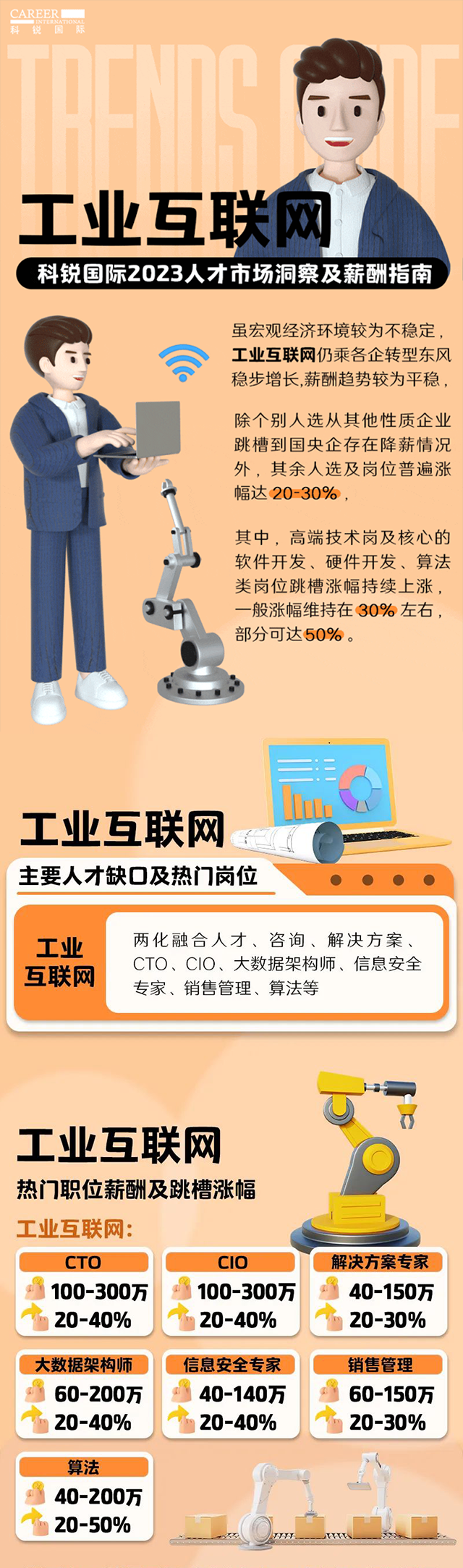 知名猎头公司AG公司国际市场研究中心陆续在第11年发布薪酬报告——《2023人才市场洞察及薪酬指南》,本文带来薪酬报告中工业互联网行业的人才市场洞察和薪酬指南。